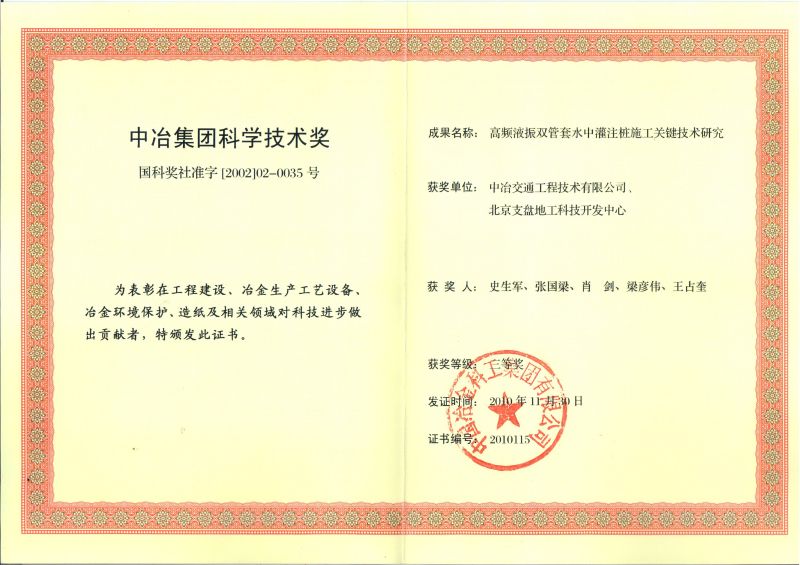 中冶集團(tuán)科學(xué)技術(shù)獎(jiǎng)高頻雙管